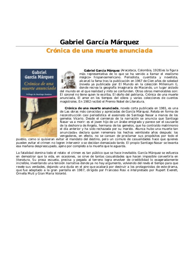 Gabriel García Márquez Crónica De Una Muerte Anunciada via es.slideshare.net